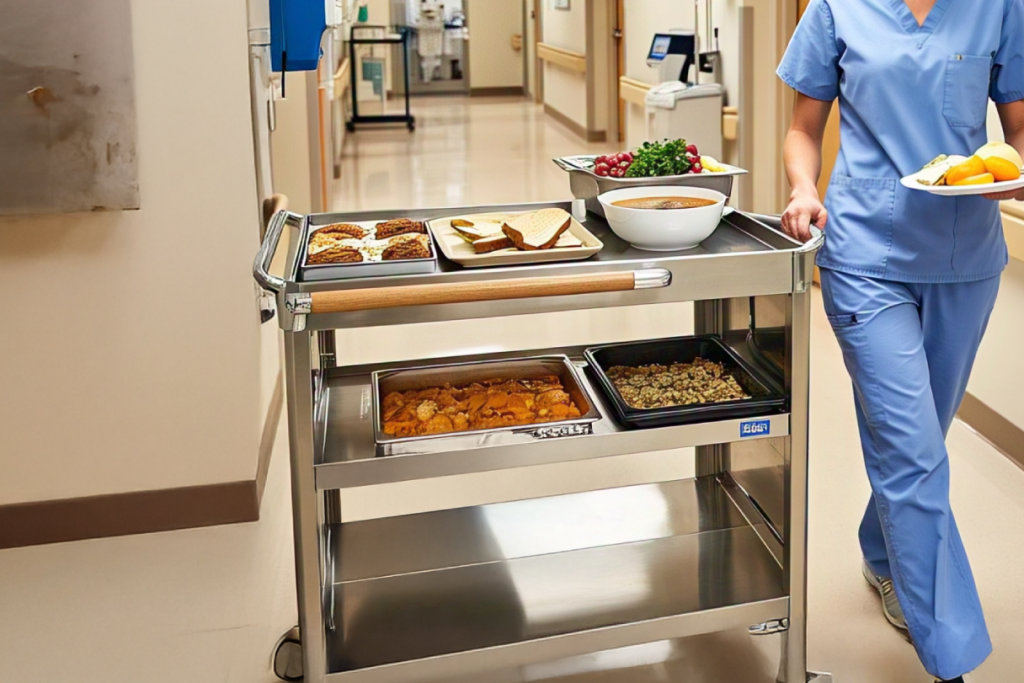 Efficient carts and equipment for safe and timely meal transportation to patients